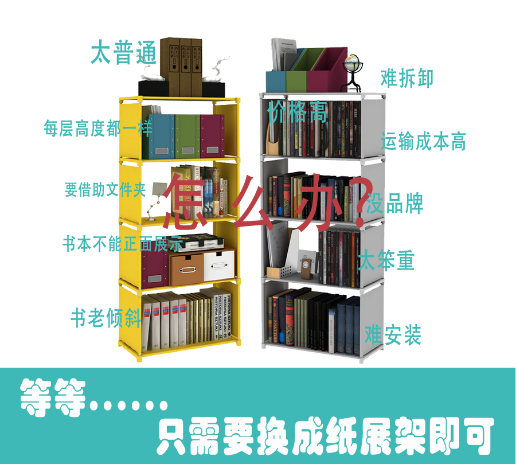 WAFF公司需要訂購一系列展架促銷展示他們的書本,但是他們面臨的問題是普通的鐵書架結(jié)構(gòu)簡單,難運輸,成本高,品牌不凸顯,并且不借助小書架或其他文件夾的話,書本也不能很整齊的擺放........