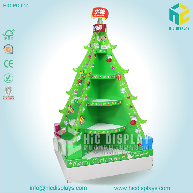 這款華美的堆頭在外觀上非常的新穎,采用了圣誕樹的造型。結(jié)構(gòu)也是相對(duì)于傳統(tǒng)的堆頭要復(fù)雜一些,承重效果也是不錯(cuò)的。也是采用了交叉受力的原理來(lái)設(shè)計(jì)的堆頭。這款產(chǎn)品的結(jié)構(gòu)與外形也是介于落地式展示架與堆頭之間。