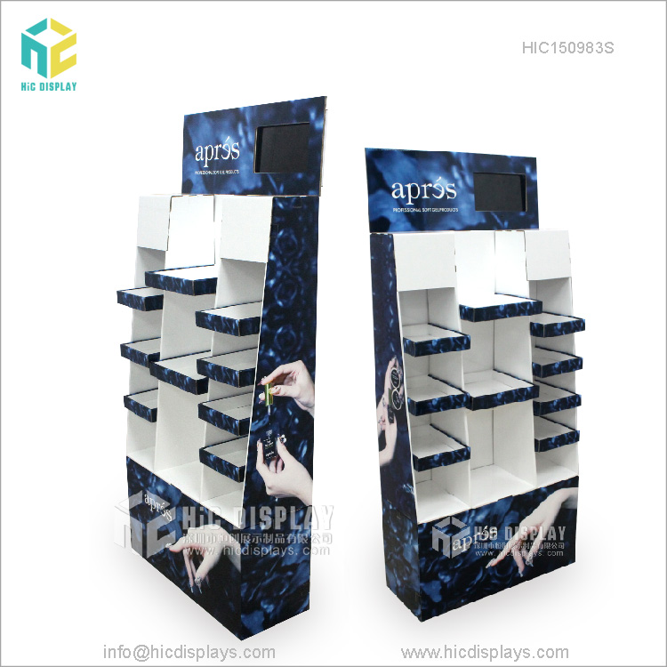 紙陳列架、紙貨架、紙展示架主要用于客戶產(chǎn)品的推銷,新產(chǎn)品的推廣,提升客戶產(chǎn)品的形象與市場(chǎng)價(jià)值,進(jìn)而為客戶帶來(lái)更大的利潤(rùn)與效益。