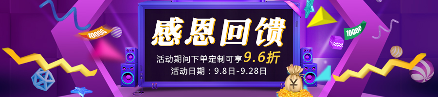公司決定在2017/9/8日至2017/9/28日期間下單定制的客戶均可享受9.6折的優(yōu)惠!